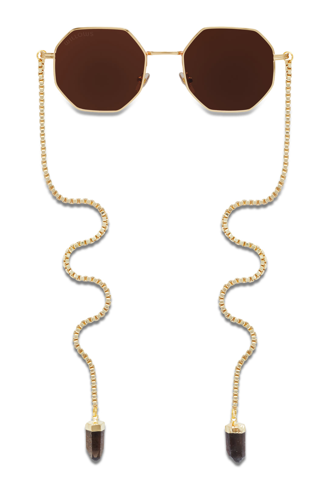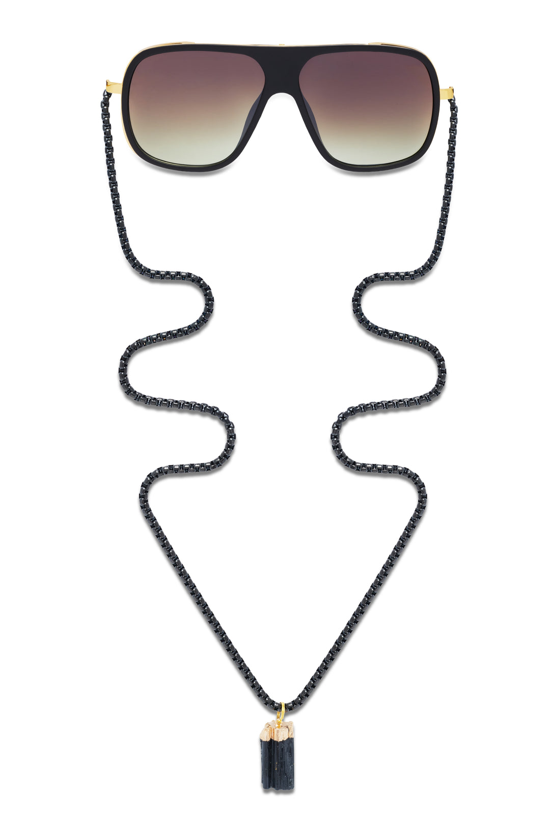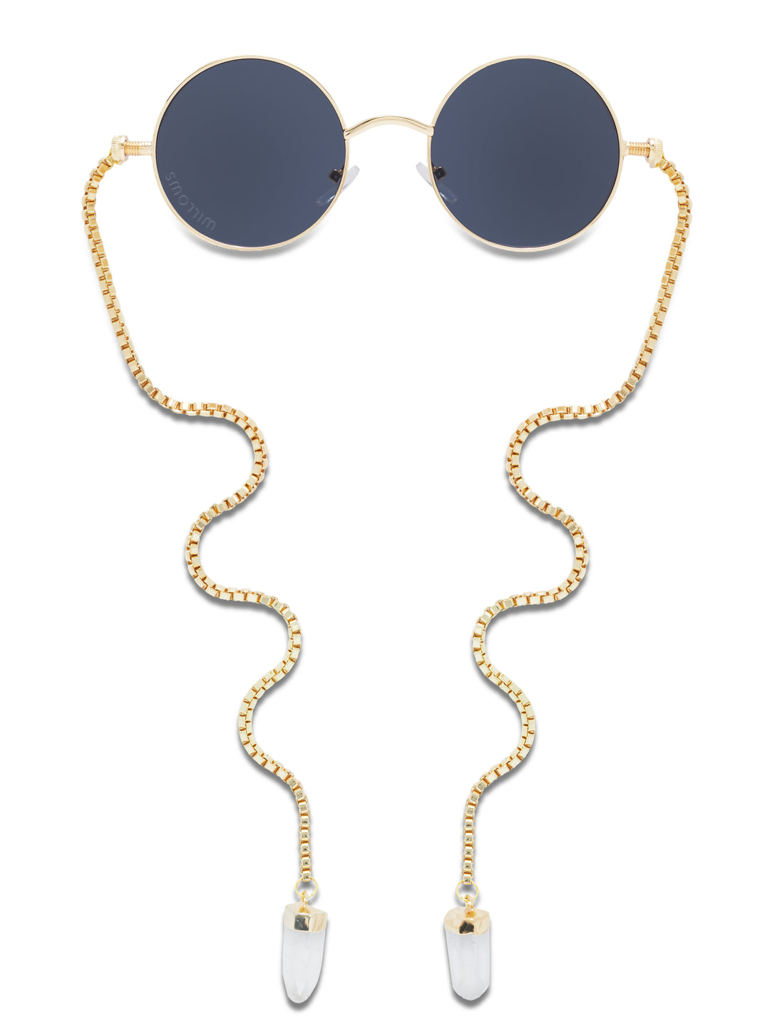 Whether you're looking for a classic gold-framed aviator with sparkling citrine crystal pendants for your everyday pair, a bold oversized cat-eye in tortoise for your next resort vacation, or pink heart-shaped frames with an antique silver chain for your next festival — it's all here. You can also choose from UV400 lenses, polarized options, prescription lenses, blue-light filtering glasses, chain necklace styles men love and coming soon -- our debut line of readers.